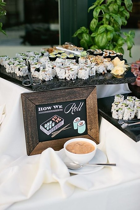 4) Faire un menu (cupcakes, sushis, macarons, bar à jus, cheese&wine, fontaine de chocolat avec fruits, guimauves, etc.)